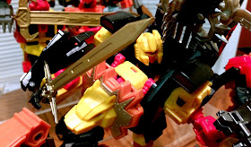 Needless to say, yours truly is quite the fan as well. While each figure came with their own cool knives and stabbing weapons that themselves combined to form the massive "Oppenheimer Sword" for the combined Feral Rex robot, I am a bit of a stickler to having things conform to the G1 counterparts - even slavishly so, since my main focus is cartoon-focused Masterpiece Transformers line. I really do like the weapons for each figure, so I never felt a need to "replace" them. However, I did want each figure to have their respective weapons much like their original toys.